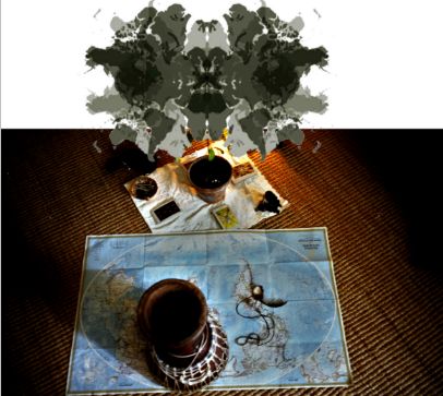 Mnie niby-atramentowe plamy, które zrobiłem z mapy świata, przypominają między innymi przekrój poprzeczny przez miednicę. Testy Rorschacha są symetryczne, gdyż symetryczne odbicie czegokolwiek w jednej lub większej ilości płaszczyzn powoduje ukierunkowanie badanego umysłu na zjawiska ożywione, gdyż, co wszyscy zauważamy, biologiczne formy życia powyżej pierwotniaków oraz ich wyobrażenia, takie jak uosobienia archetypów, posiadają oś lub osie. To właśnie podobieństwo czy też samopodobieństwo, które najwyraźniej jest cechą rozwijających lub zwijających się w czasie procesów, matematycznie opisał poprzez zdefiniowanie funkcji fraktalnych kolejny po Korzybskim warszawiak – Benoît Mandelbrot. Dziś wiemy, że każdy rozwijający się w czasie proces skazany jest niejako na samopowtarzanie w coraz dłuższych lub coraz krótszych odstępach podobnych sekwencji zdarzeń czy też kształtów, których pierwotny wzorzec narodził się pod postacią atraktora u zarania danego procesu. Nie różnią się od siebie zbytnio z matematycznego punktu widzenia: galaktyka, łza, sosna, historia cywilizacji, tajfun i ludzkie życie. Tak jak drzewo według wykładniczego matematycznego pryncypium i złotego rytmu optymalizacji energii napięć, znanego jako Φ, wypuszcza kolejne gałęzie, tak i nam, według nie innych praw podstruktury, przybywają kolejne znaczące doświadczenia. I nie trzeba geniusza ani proroka, aby spoglądając na rosnące drzewo lub wodę wylewającą się z wanny, przewidzieć ile tego procesu jeszcze zostało. Takimi oczami patrzą na świat matematycy. Newton wyliczył koniec świata na 2060 rok, bracia McKenna, posługując się 64-heksagramową matrycą I-Ching’u (Yijing), odnaleźli matematyczne rytmy w potraktowanym jako funkcja fraktalna czasie historycznym i wskazali na rok 2011 na trzy lata przed zinterpretowaniem płaskorzeźby z Palenque jako fraktalnego kalendarza, wskazującego podobną datę jako punkt przełomu w strukturze czasu. Tysiące lat po Księdze Przemian oraz stworzeniu szachów i kamasutry, naukowcy odkryli, że nasze RNA posiada 64 kodony i podczas procesu kodowania DNA posługuje się analogiczną permutacją do tych, które odtwarzają wyżej wspomniane gierki, co opisuje w swoich dogłębnych studiach Katya Walter. Robert Anton Wilson z kolei, współtworząc pojęcie psychologii kwantowej często przypominał dyskordiańską myśl, iż rzeczywistość to oryginał testu Rorschacha i to nasz umysł nadaje znaczenia i cechy postrzeganemu. Jednowymiarowa kreska potrzebuje dwuwymiarowej kartki, która potrzebuje trójwymiarowych biurka i pokoju. Tym samym prawem nasza rzeczywistość może być osadzona w czwartym wymiarze, którego my z naszą spektroskopią nie mielibyśmy prawa dostrzec. Dlatego od tysięcy lat do eksploracji nieznanych rejonów służą ludziom mapy, kreślone przez szamanki i szamanów, wiedźmy i czarowników, poetów, mistyków oraz wszelkiej płci i maści podróżników po wymiarach transrealnych.