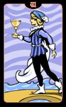 Działaj na wzór Waleta Pucharów, to znaczy nie dbaj o rozgłos, licz się z tym, że korzyści nie przyjdą od razu. Działaj z ukrycia. Sam pozostań w cieniu, ale kogoś z kim jesteś związany uczuciowo popieraj i wysuń na pierwsze miejsce. Uwaga! Ta karta na trzeciej pozycji nie jest zbyt dobrą wróżbą.