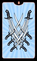 W nieoczekiwany sposób rozwój twoich spraw zależeć będzie od kogoś w typie Królowej Kijów, czyli od osoby zajmującej się głównie słowem i informacją. (Jeżeli karty są niekorzystne, może to oznaczać straty poniesione skutkiem działalności plotkarzy i oszczerców.)