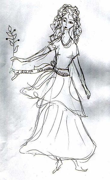 Wówczas ja zaczęłam wybrzydzać. Rzeczona Laura wydawała mi się paskudna, niepotrzebnie brzydko naga, pokrwawiona czy posiniaczona, a jej rozwiany włos bynajmniej nie romantyczny. Miała też nieproporcjonalnie długie nogi, a ja z koleżanką należymy do tych, których wzrost obecnie zalicza się do „niskich”, choć kiedyś byłyśmy „średnie” (nie, nie skurczyłyśmy się, tylko normy wyśrubowano) i z zasady nie trawiłyśmy długonogich blondynek. Dla mnie Laura powinna być lekka, zwiewna, subtelna (choć ja do takich się nie zaliczam) i taką narysowałam w proteście przeciwko uciemiężonym, ale z lekka zeszmaconym dziewicom. Moja Laura wyglądała tak: