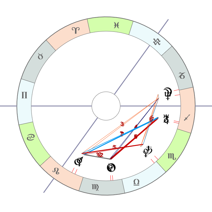 To jest przykładowy kosmogram surowy, bez rozsunięcia planet:
