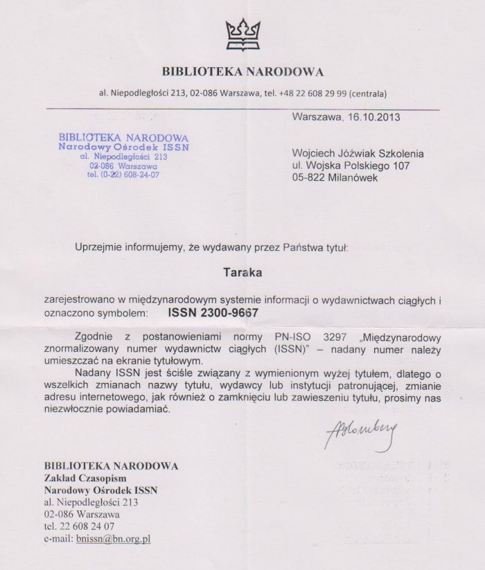 Na koniec gratulacje z powodu nadania Tarace numeru ISSN!