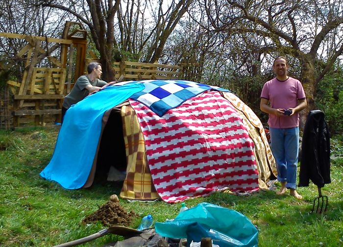 Na szkielecie szałasu układamy koce: