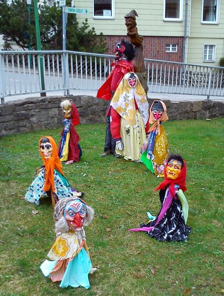 ...nad jeziorem Oderstausee w górach Harz, gdzie się wybraliśmy. Dalej, w miasteczku Braunlage, była istna feeria czarownic: udekorowane nimi były skwery, domy, a nawet druty w poprzek ulicy. Oto mała próbka:
